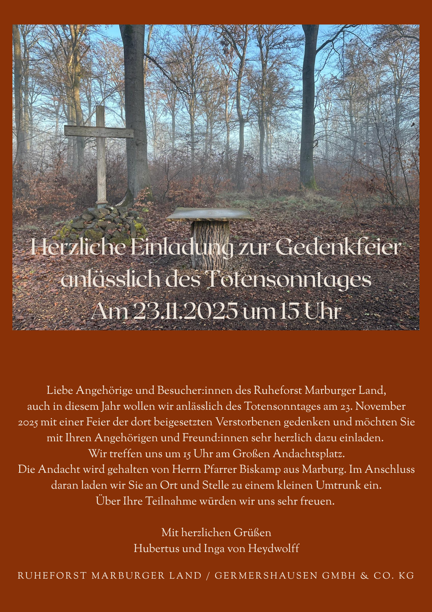 Im Wald erleben wir den ständigen Wechsel zwischen Werden und Vergehen, der die Natur und auch unser Leben bestimmt. Und so ist es nur natürlich, wenn wir die Asche unserer Toten dem Wald anvertrauen. Hier übernimmt die Natur die Grabpflege, in der Ruhe des Waldes lassen wir den Lärm und die Hetze des Alltags hinter uns.